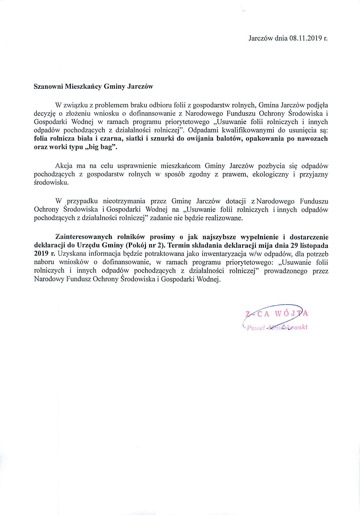 Nabór wniosków o dotację na "Usuwanie folii rolniczych i innych odpadów pochodzących z działalności rolniczej" z terenu gminy